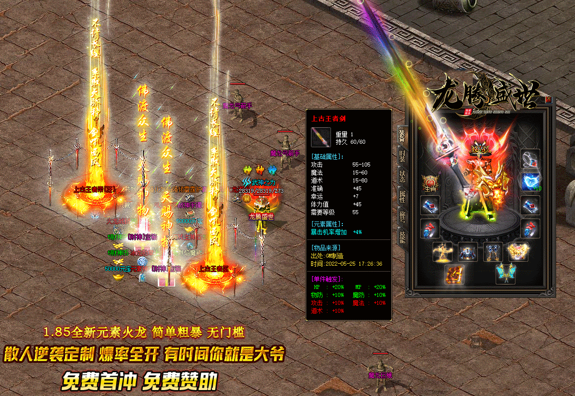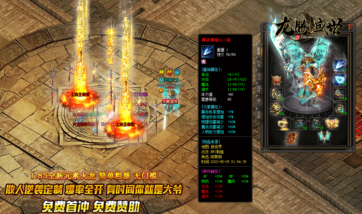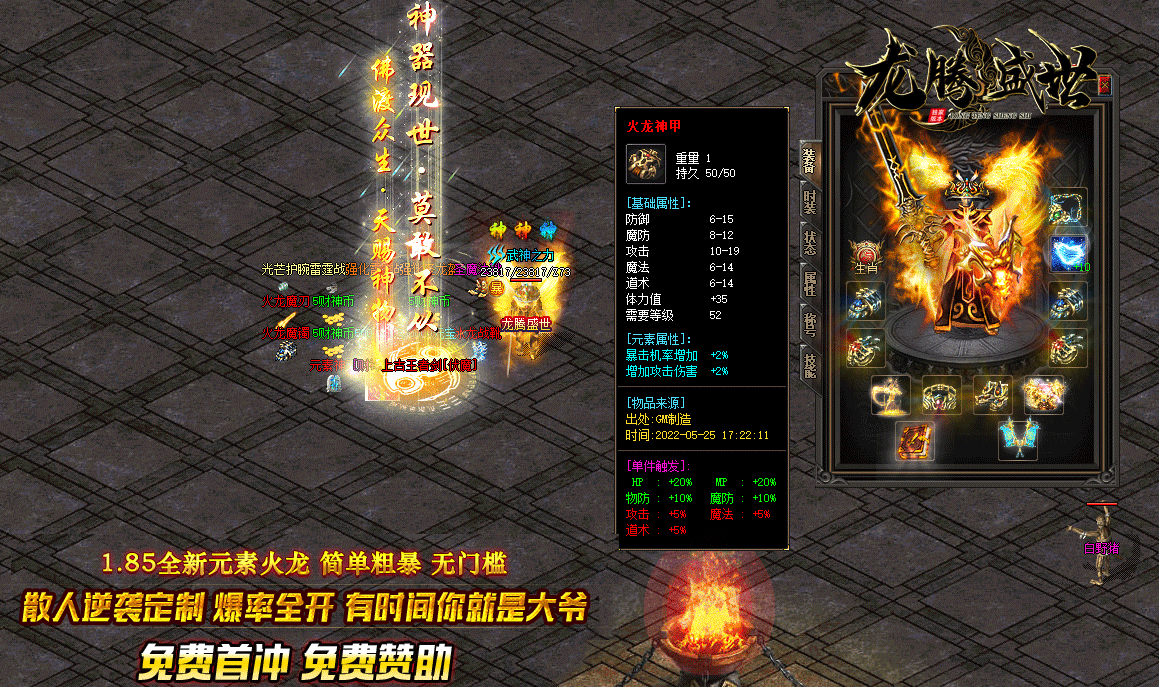 雷霆→战神→火龙→冰龙→等各种装备游戏内体验